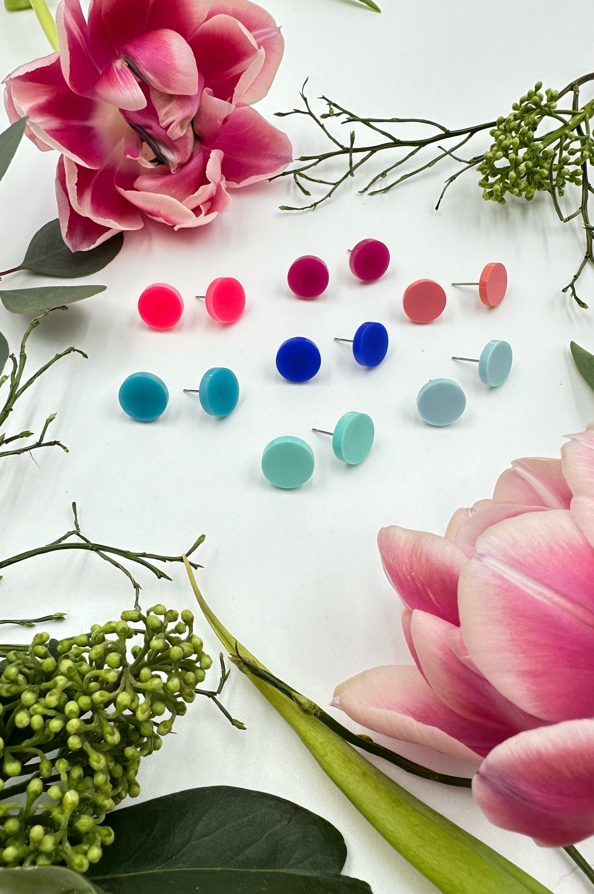 Náušničky Circle Pastel jsou v barvách sytě růžové, lososové, fuchsiové růžové, baby blue, světle modré , azurové a námořnické modré.