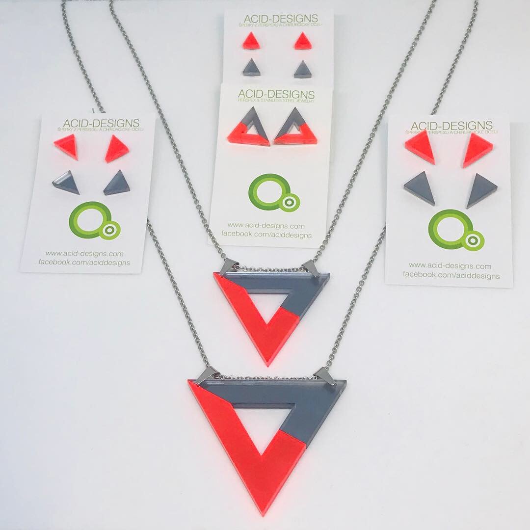 Náhrdelník Acamar je vytvořen z barevného dvojvrstvého perspexu a je na řetízku z chirurgické oceli dlouhém cca 88cm .