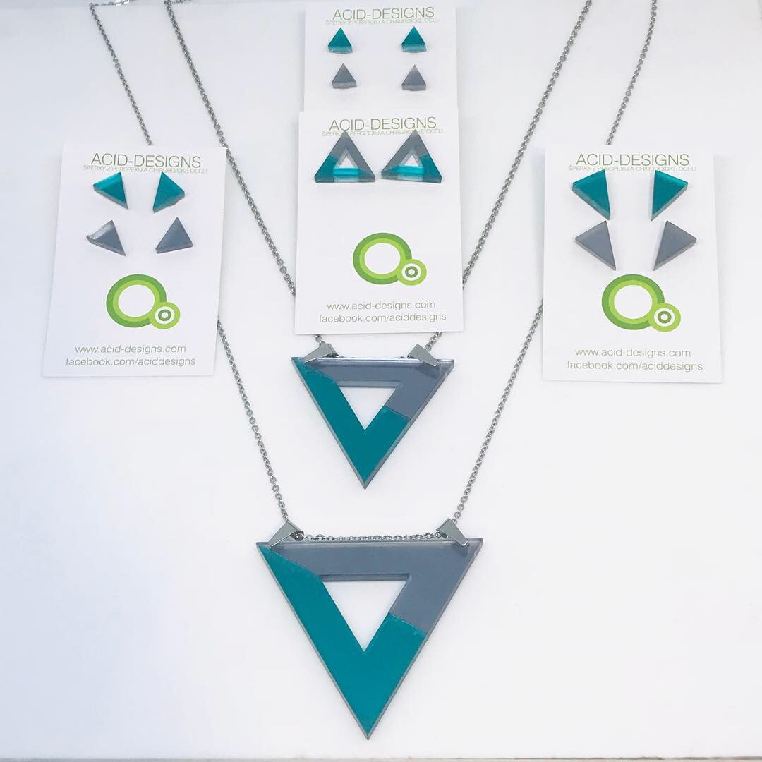 Náhrdelník Acamar je vytvořen z barevného dvojvrstvého perspexu a je na řetízku z chirurgické oceli dlouhém cca 88cm .