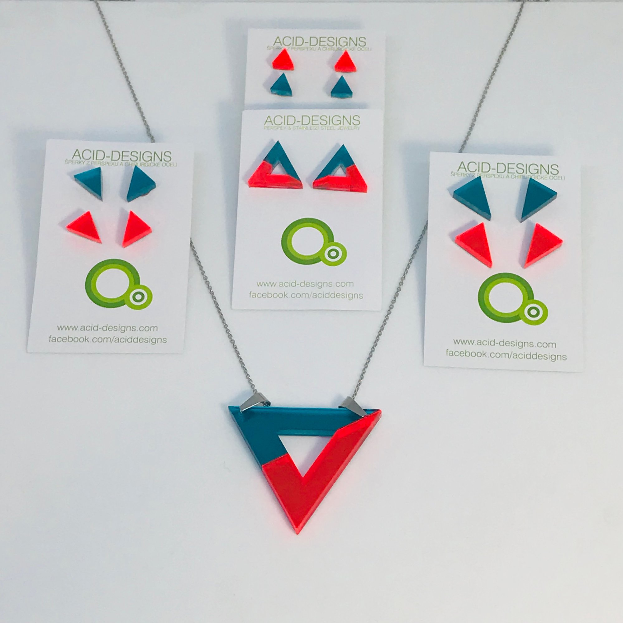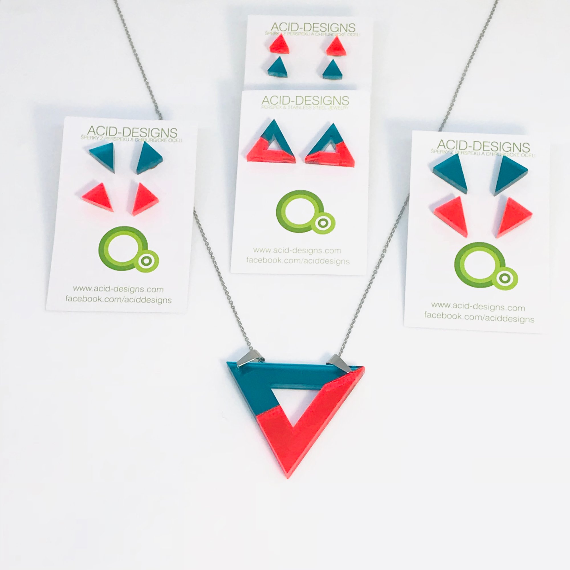 Náhrdelník Acamar je vytvořen z barevného dvojvrstvého perspexu a je na řetízku z chirurgické oceli dlouhém cca 88cm .
