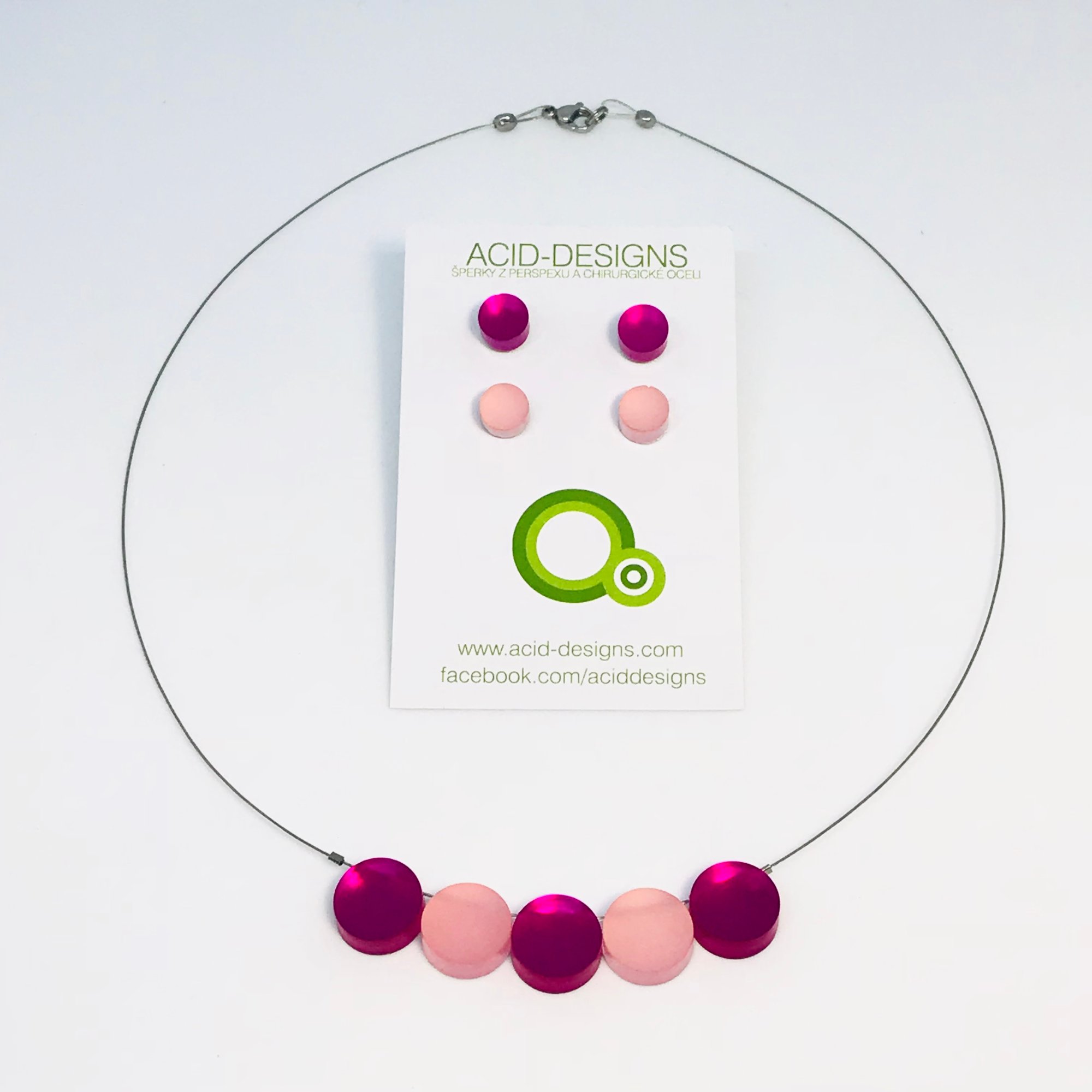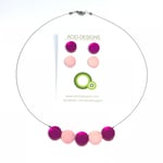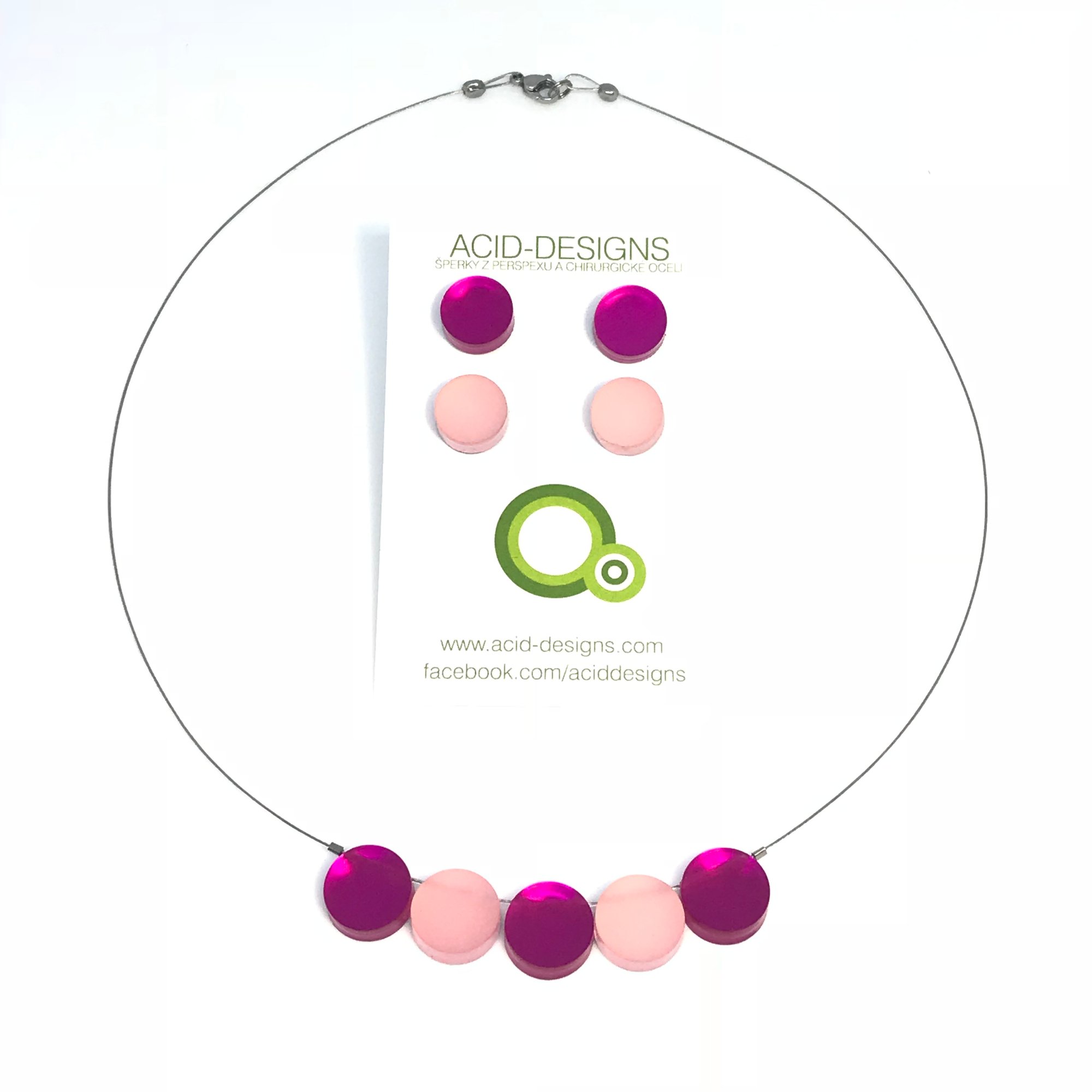 Náhrdelník Circle fuchsiová-Starorůžová s 2 páry náušnic Circle mini