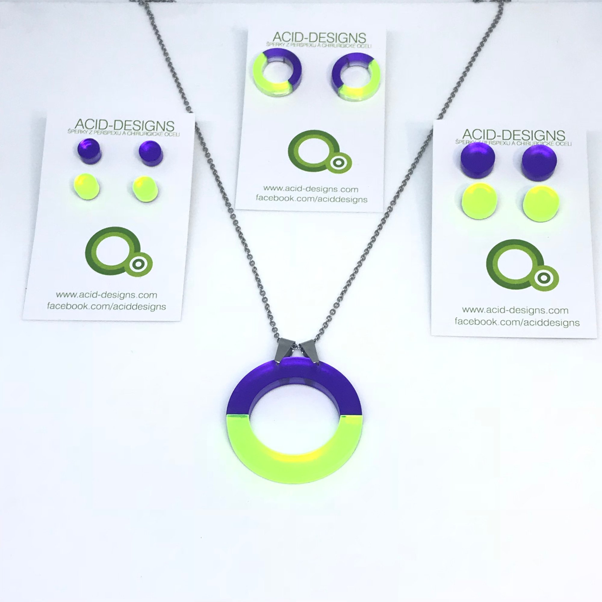 Náhrdelník DoubleCircle je vytvořen z barevného dvojvrstvého perspexu a je na řetízku z chirurgické oceli dlouhém cca 88cm .