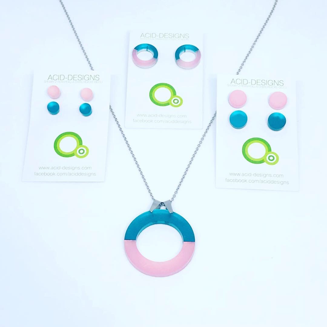 Náhrdelník DoubleCircle je vytvořen z barevného dvojvrstvého perspexu a je na řetízku z chirurgické oceli dlouhém cca 88cm .