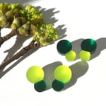 Náušnice ve tvaru dvou spojených bublin v nových barevných kombinacích inspirovaných jarem. Nově jsou dostupné v kombinacích limetková zelená - smaragdová zelená a obráceně.