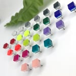 Náušničky jsou vyrobeny ze dvou vrstev - barevného perspexu a zrcadlového perspexu - díky němu jsou tak barvičky výraznější a mají velmi působivé odlesky.