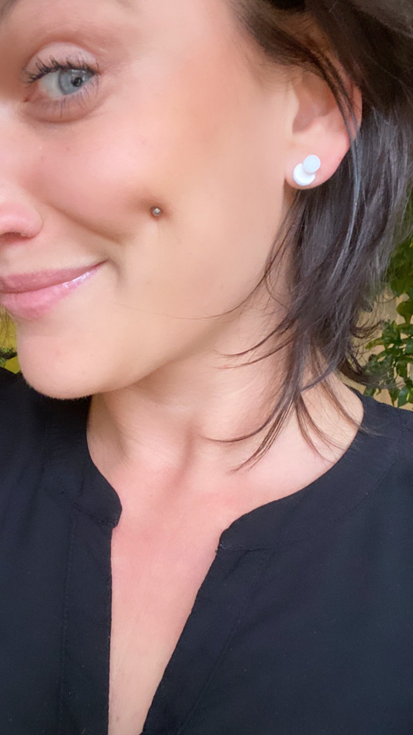 Puzetka z chirurgické oceli je u těchto náušniček zatavena , zadní strana lakována ochranou vrstvičkou a protidíl je silikonový.