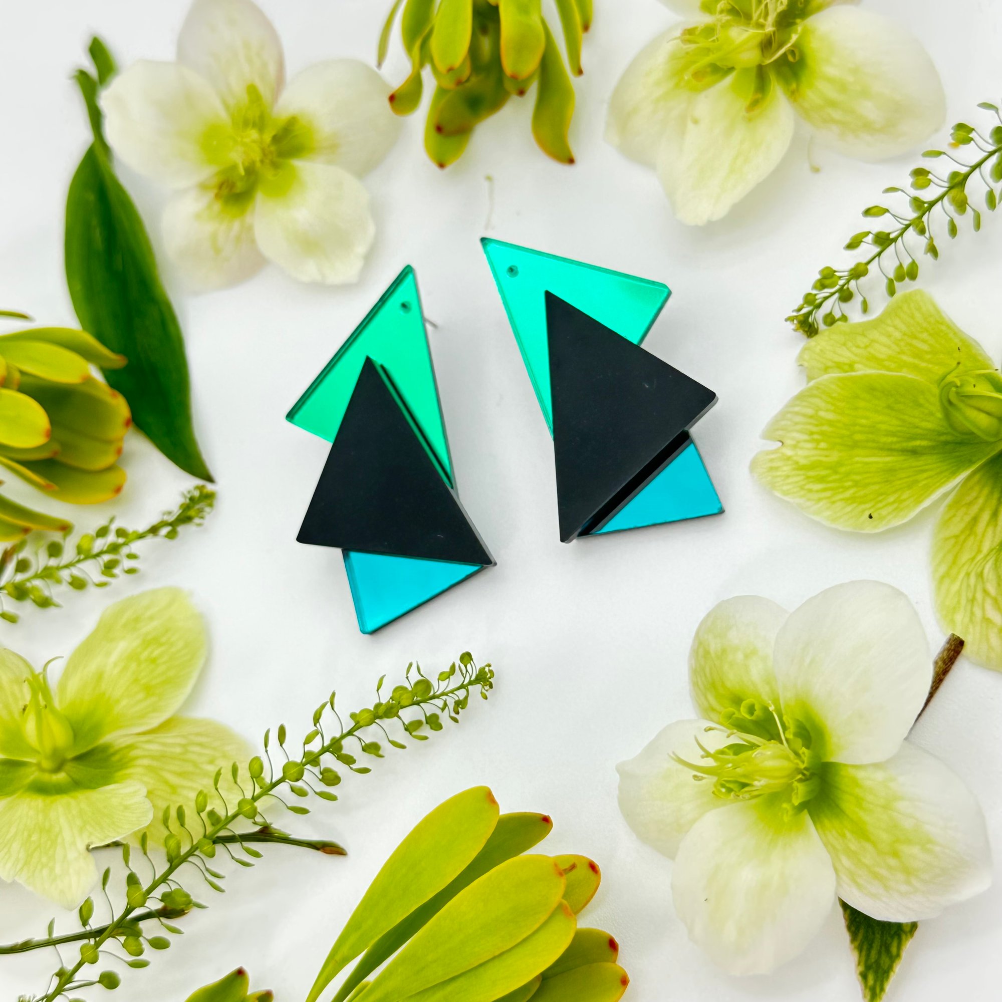 Pravá a levá náušnice jsou navrženy tak, aby Vám černý trojúhelník opisoval křivky tváře.