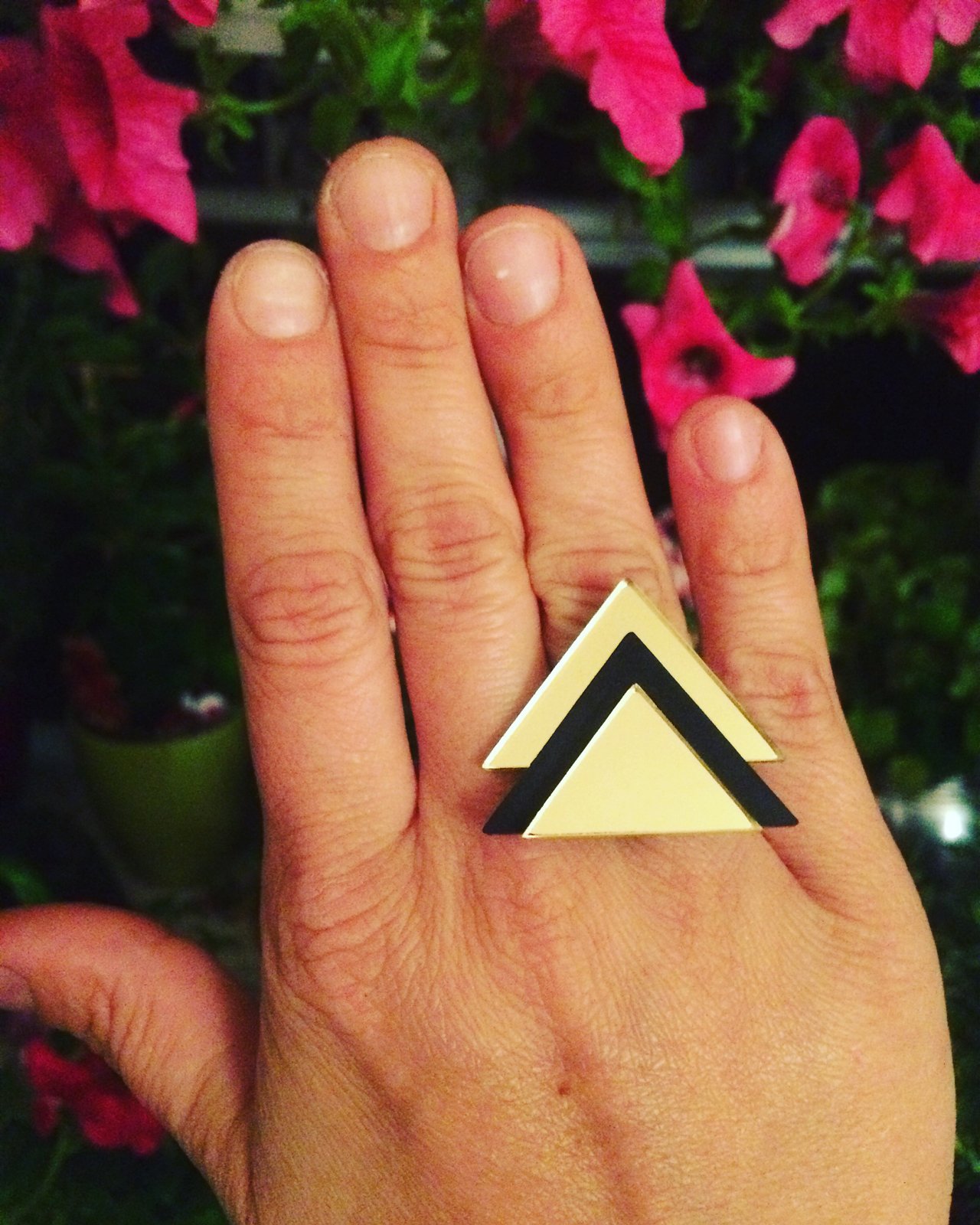 Základ tohoto nepřehlédnutelného prstenu je z hypoalegenní chirurgické oceli a díky jeho otevřenému tvaru lze přizpůsobit Vaši velikosti prstu. Materiál , který zdobí prsten je z 3 vrstev perspexu.