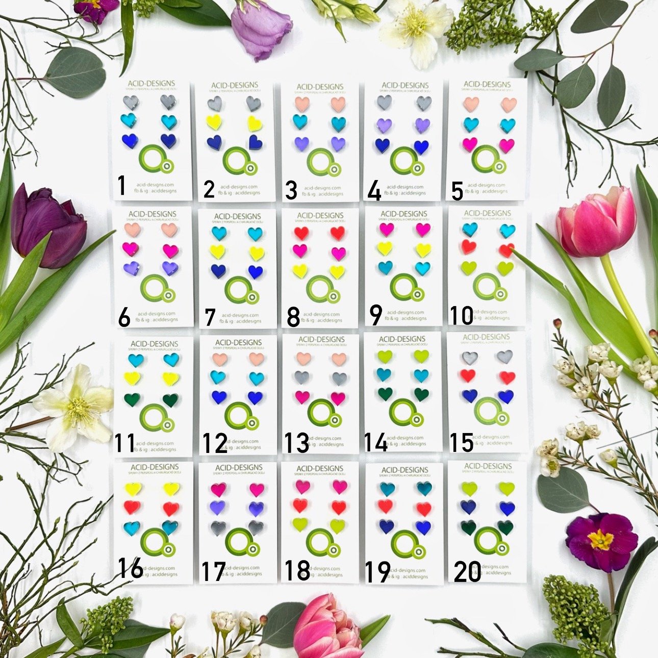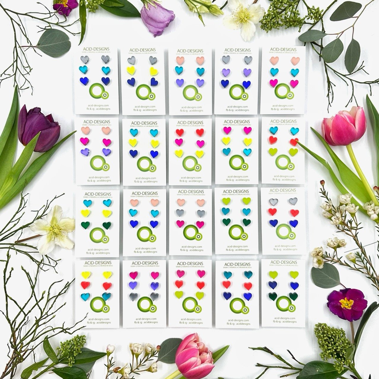 Náušnice Srdíčka jsou vyrobeny ze dvou vrstev - barevného a zrcadlového perspexu , barvy jsou tak výraznější a mají velmi působivé odlesky.