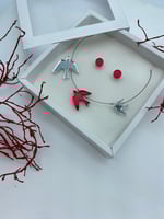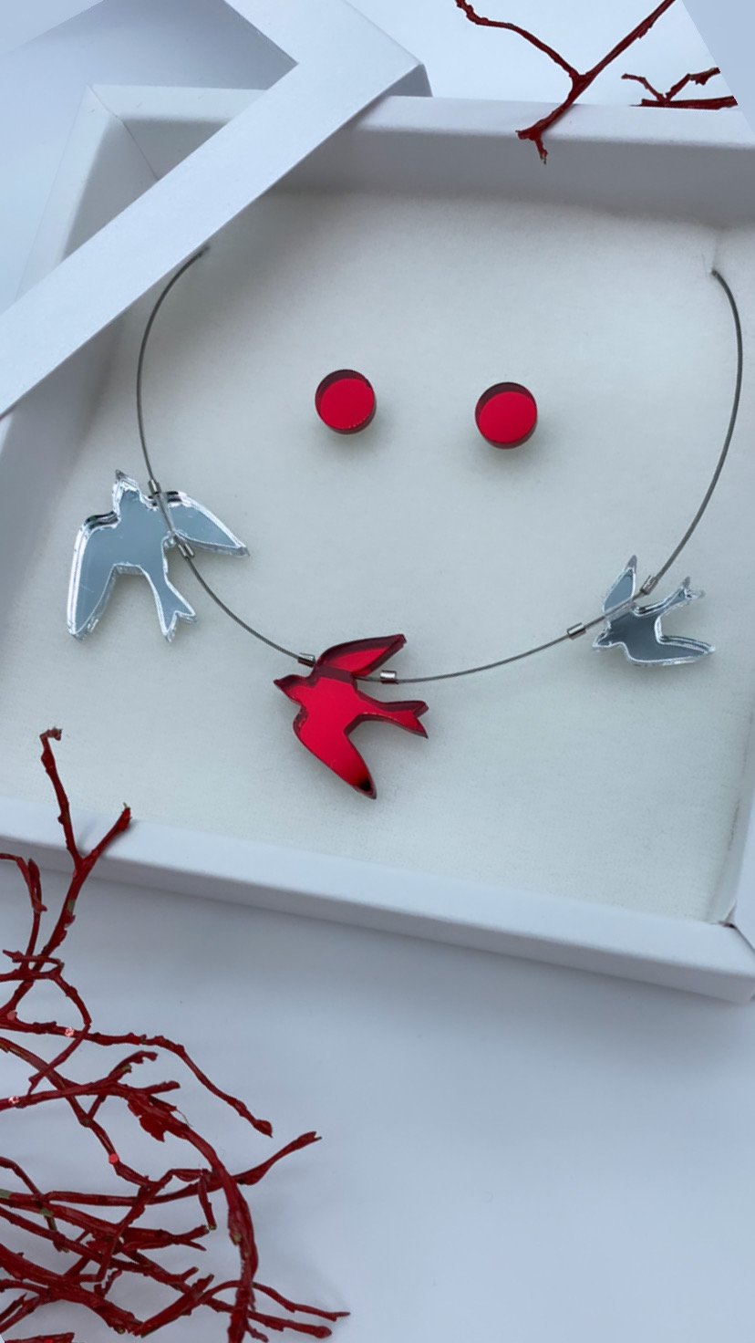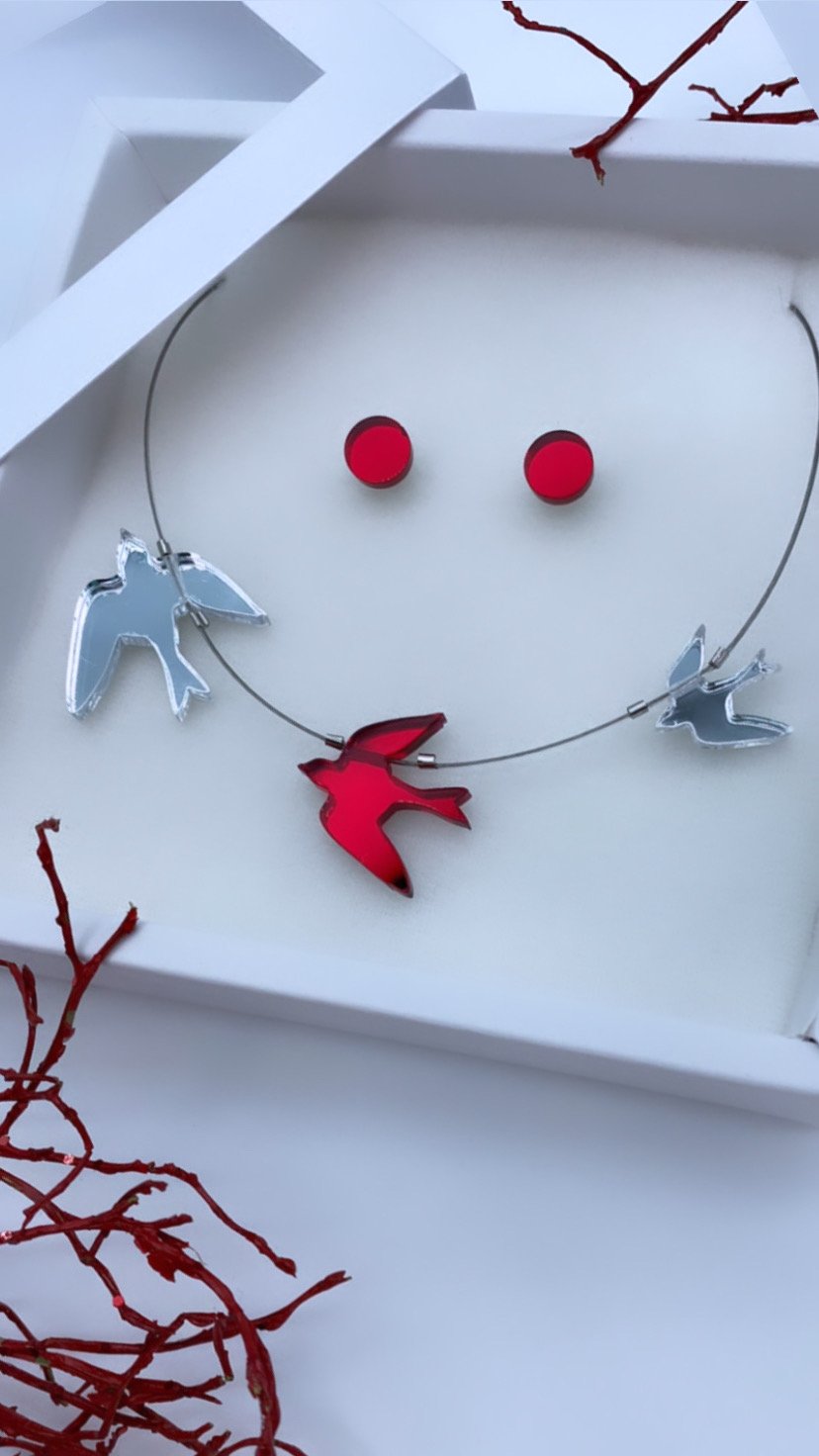 Stříbrny X Červený Zrcadlový Náhrdelník Ptáčci